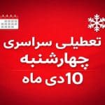 🔴 تعطیلی رسمی و سراسری ادارات و مراکز آموزشی چهارشنبه ۱۰ دی ۱۴۰۴