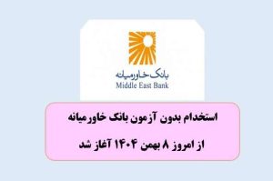 استخدام بدون آزمون بانک خاورمیانه از امروز ۸ بهمن ۱۴۰۴ آغاز شد / زمان و نحوه ثبتنام
